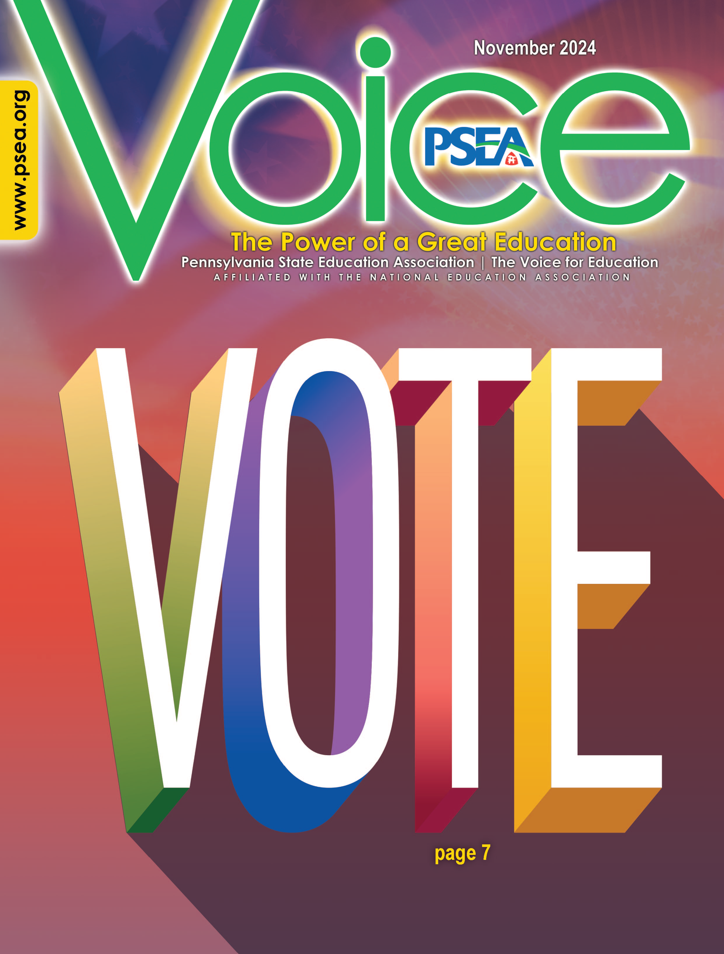 Voice preview: Vote!Every election is important. PSEA members have always known this, and the 2024 election is no different. In one way or another, public education is always on the ballot. That’s why PSEA and the elected members of PSEA-PACE take such care in deciding which candidates they recommend. PSEA members make these recommendations. When they do, they focus on candidates’ positions on public education and working people. Specifically, they ask questions about where candidates stand on the key issues impacting our schools, professions, pay, working conditions, and pensions. On the pages of the November 2024 Voice cover story, you will see the results of this thoughtful, detailed process. The candidates you’ll see here have passed a critical test. They have demonstrated that they will stand with PSEA members on issues that we care about and that affect our lives and livelihoods. Voting is a very personal choice. As you make it, please consider voting for these candidates, because we know that they will stand with us. Read the full story in the latest issue of Voice: |
