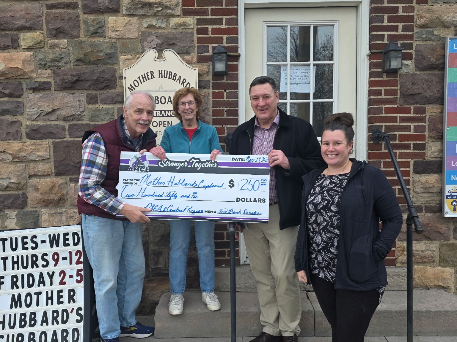 Association of Mifflin County Educators President Del Fuller, Vice President Brian Wriglesworth, and Chief Negotiator Rebecca Conner delivered a donation to Mother Hubbard’s Cupboard in Lewistown.