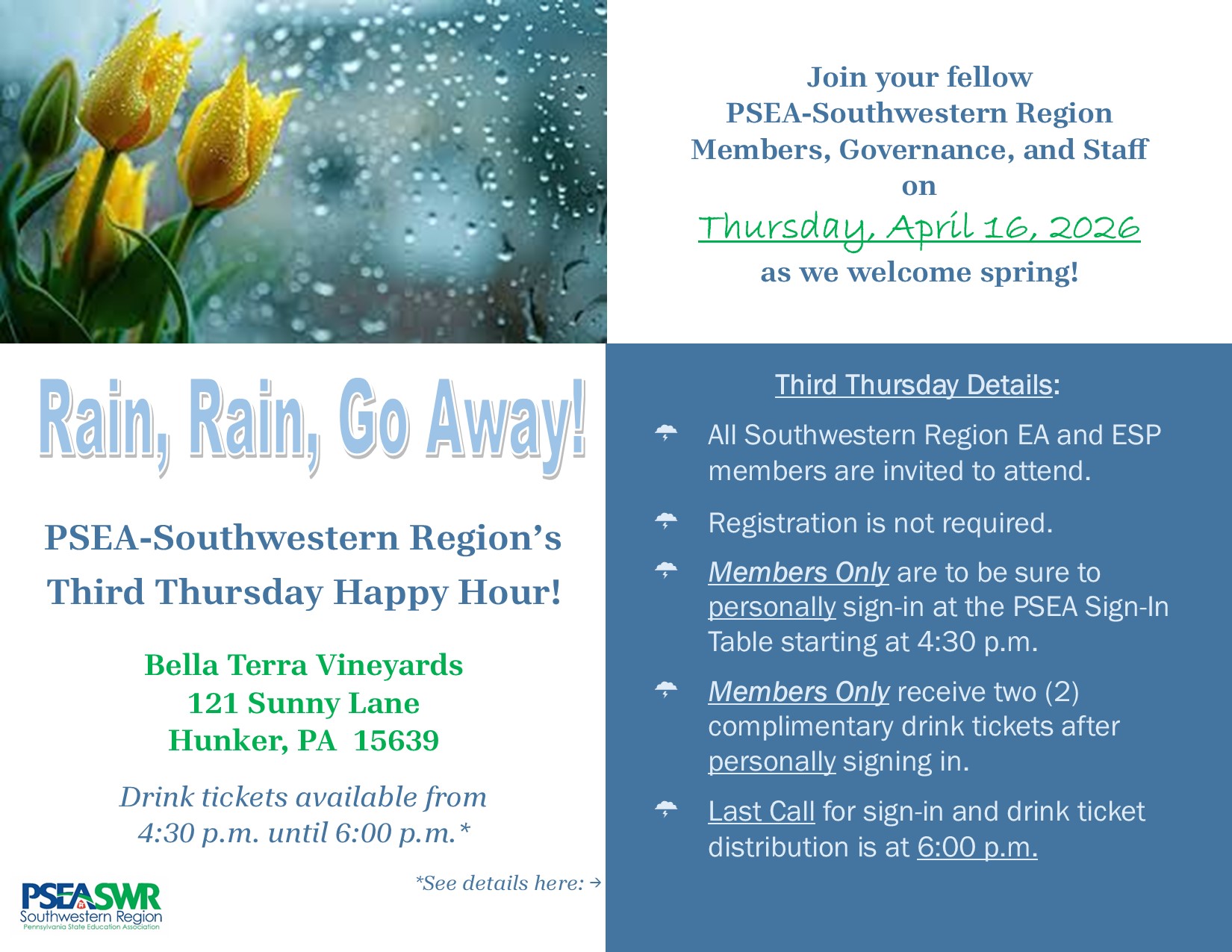 If you have any questions, please contact Michelle Stonebraker at the PSEA-Southwestern Region Office (724-696-3100 or mstonebraker@psea.org).