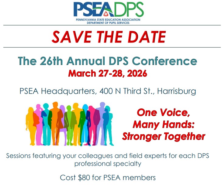 PSEA's Department of Pupil Services (DPS) supports school counselors, school dental hygienists, home and school visitors/school social workers, school nurses, and school psychologists.
